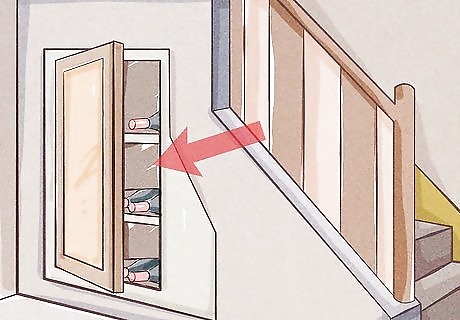 Place your wine bottles in an interior closet instead of the basement. Closets are dark and stay relatively cool. Choose a hallway or stairway closet that has interior walls as opposed to exterior walls. Exterior walls face the outside, which may cause the temperature to fluctuate in the closet. If you do not have an interior closet space, then store your wine in a closet that has a shaded, northern wall.