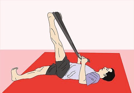Stretch your side splits. Hold a runner's lunge for 30-60 seconds on each leg, pushing your hips toward the floor and making sure your knee does not pass your toes on the leg in front (make sure the leg in font stays at a 90 degree angle). Now slide into your splits. Note: even if you don't have them to the floor, just stay in them! It does hurt, but just tough it out for 30 seconds.