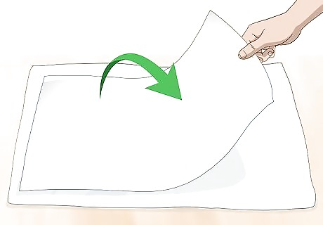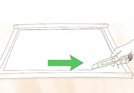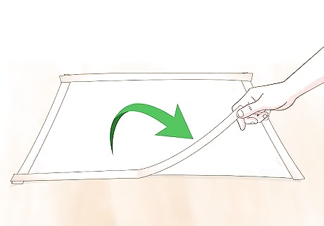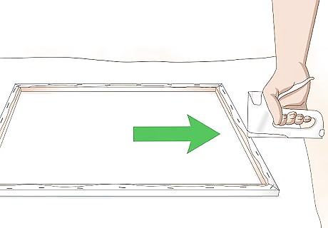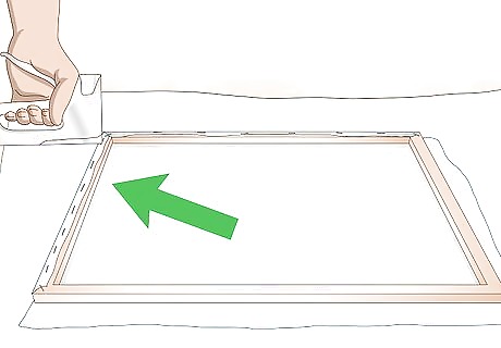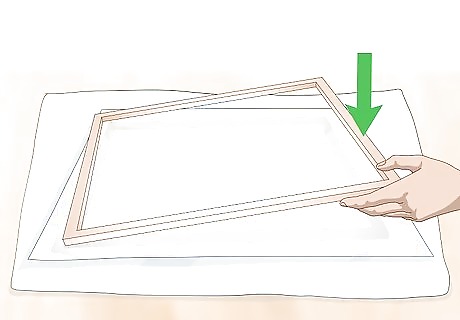 Place the canvas stretcher on top of the paper. Place the stretcher bar on top of the paper on a flat surface like a table. Set the frame on the paper so that it's fairly centered. You should have enough paper that it will come up around the edges of the frame.