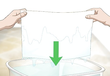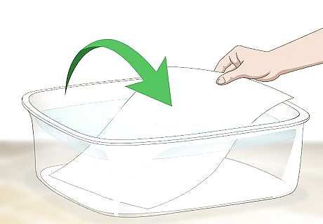 Submerge the paper in cool water. Fill a clean bathtub or plastic tub with about 4 to 6 inches (10 to 15 cm) of water. You need enough water so that the paper is able to float and be submerged in the water. Lay the paper in the water, and then dunk it under. Cool water helps the paper keep its sizing. Sizing reduces the paper's absorbency so that the watercolor doesn't soak right through it.
