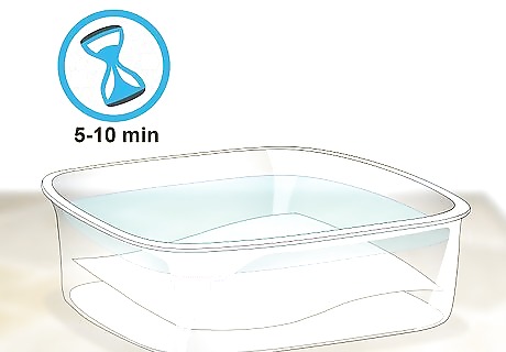 Let the paper soak in the water for 5 to 10 minutes. Check on the paper periodically to see if it's soaked enough. Check the paper by bending one corner down a bit. If it stays in that position, it's soaked enough. If it doesn't, it needs more time. If it flops down onto itself, it's been soaked too long. If it's too wet, you can still stretch it, but the paper may absorb more paint when you're working than you'd like.