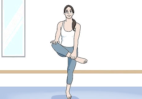 Place your right ankle over your left knee. Begin by lifting your right foot from the ground. If necessary, use your hands to place it over your left knee. Lean back against the wall to keep your balance.