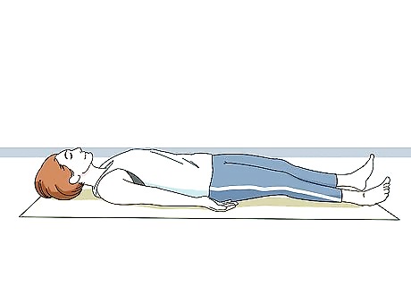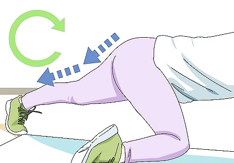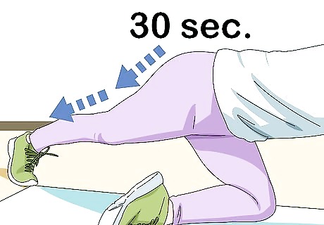 Lie flat on your back with your legs straight. The stretch works best if you lie on the floor; do not perform the stretch lying on a bed or sofa. Rest on your back and stretch your legs out, letting your heels rest on the ground. If the surface you’re lying on is hard or cold, you can lay down a blanket or a yoga mat. For a different angle to the stretch, lie on your stomach and prop yourself up on your elbows. Repeat the rest of the stretch motions, but keep your weight on your elbows and tuck your knee beneath your torso.