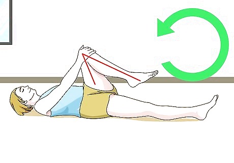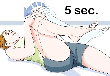Repeat the stretch using your other knee. This time, bend your right knee and grab the right ankle with your left hand. Place your right hand behind your knee and gently stretch the knee towards your left shoulder. As you improve your piriformis flexibility, you can hold the stretch for as long as 1 minute.