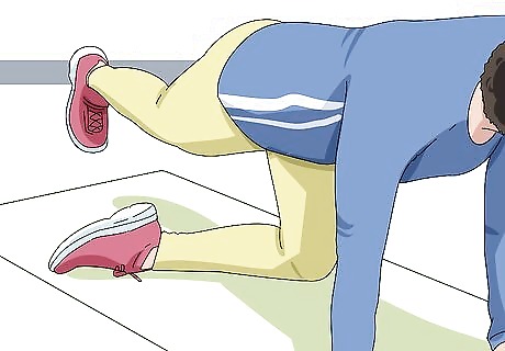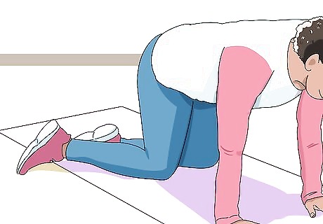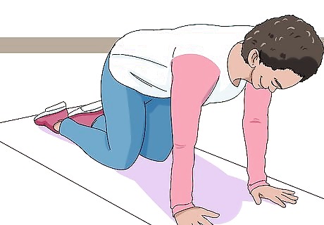 Support yourself on your hands and knees. If you’re on a hard or cold floor, put down a blanket or yoga mat before you begin.