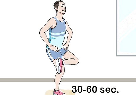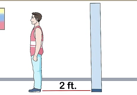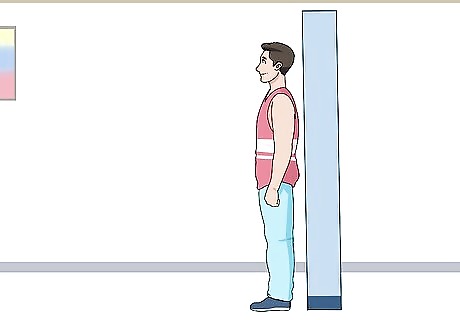 Stand with your back against a wall. You can do this stretch at home or at a gym—just make sure that the wall you’re leaning against is sturdy enough to support your full weight.