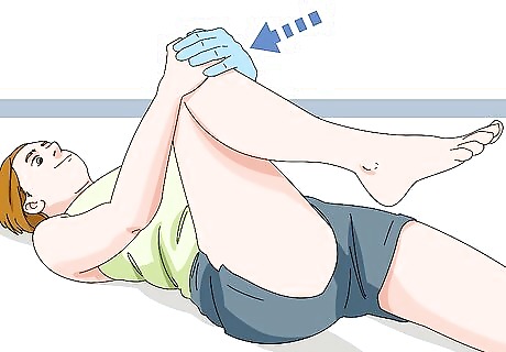 Place your other hand just behind the bent knee. Once you have grabbed your left knee with your right hand, place your left hand just behind your left knee. You’ll use this hand to exert gentle pressure on your leg as you stretch the piriformis muscle.