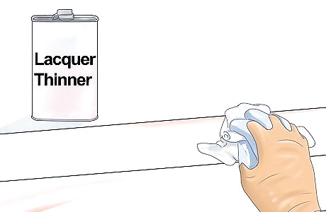 Wipe down the wood with lacquer thinner using the brush or sponge. Once clean, wipe the wood with cotton rags. You may have to repeat this process a couple of times.