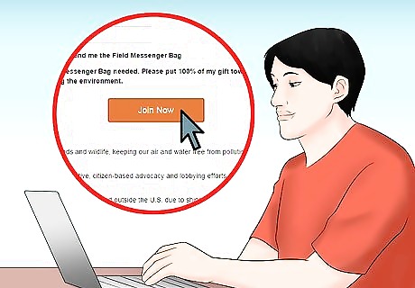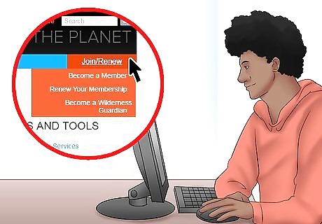 Click the "Join/Renew" tab. Once you're done exploring the site, click the orange tab at the top of the page to begin the process of becoming a member of the organization. You can join from the national website or, if you prefer, you can donate by mail or phone. Clicking the tab will bring you to a page titled "Ways to Give." You can join online from the top of the page, or scroll down to explore other ways to support the organization. If you want to donate by phone, call (415) 977-5653. To donate by mail, print the mail-in form available on the website and send it along with your donation to Sierra Club Member Services, 2101 Webster St., Suite 1300, Oakland, CA 94612. If you join by mail, an introductory or limited income membership is $25. There are higher membership levels if you prefer.