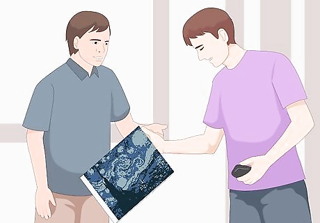 Purchase merchandise from artists. Buy paintings, tickets, and other goods that directly fund an artist or content creator. When you purchase something from an artist, you can physically see where your money is going. If you’re not interested in sponsorships, investing your time and money into buying physical items and performance tickets can help to support the arts. If you visit an art gallery or concert hall, be sure to leave a positive review online. This encourages other people to come out and visit these venues.