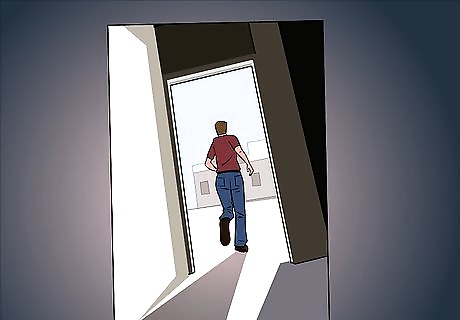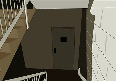 Check some essential features of the hallway and of your room. If a blaze were to suddenly erupt, you can't leisurely test certain features of the building. Doing this ahead of time saves you time and reduces your action plan to instinct instead of analysis in the event of a fire. Find out if stairwell doors lock behind you. If they do, you could be trapped in the stairwell if it's filled with smoke, so you'll want to exercise extra caution before committing to that option. Make sure to keep the windows in your room open. If they do not, locate something in your room that you could throw through the window. Visualize how you would make your escape through the window, and make note of ledges or fire escapes that might assist you. Two stories is typically a reasonably safe jump — although there is still a good chance of injury — but if the window were your only possible escape route and you were in imminent danger you might need to risk jumping from a greater height. You can learn how to survive a fall from heights here. Locate fire extinguishers and fire alarms and make sure you know how to use them.