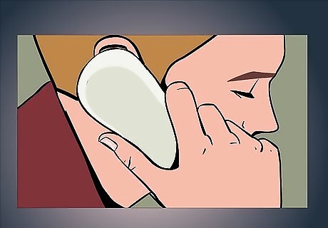 Stay in your room if the fire is in the hall blocking the exits, or if the hall is filled with heavy smoke. Even if flames are not present, thick smoke can kill you, so unless your room is on fire or also filled with heavy smoke, you're probably better off staying inside. If there is smoke present in the room, open the windows and turn on the bathroom vent if available. Place wet towels at the bottom of the door and around any other cracks around the doorway. The wet towels will help keep smoke out of the room. Fill the bathtub with water. Use an ice bucket, trashcan, or suitcase to throw water onto the door or any other hot surface or spot fire in the room. If you have a fire extinguisher in the room, or if you're able to safely get one from the hallway, keep it close at hand and be ready to use it. Create a mask by wetting a towel or article of clothing and tying it around your nose and mouth. Remember, smoke inhalation is deadly and most fire fatalities are caused by smoke or toxic gas inhalation. Do all you can to minimize the amount of smoke you're exposed to.