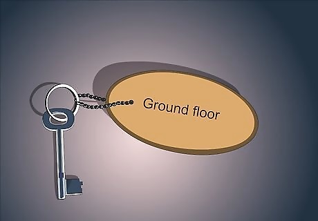 Put your room keys and flashlight in your shoes before you go to bed. If you need to leave your room during a fire, you want to be sure to bring your keys and flashlight, and while you don't want to waste time dressing, shoes can make your escape easier. Keep them together, and hopefully, you'll remember them. If your hotel has multiple keys for different doors, make sure you know which keys open which doors, and label them if necessary. Bring all keys with you if you have to leave your room, because you may not be able to exit some doors without them. You may find that your room is the safest place to be and you'll need your key to get back in.