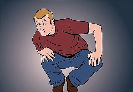 Stay low to the ground as you move. As soon as you notice signs of fire (including the sound of your smoke detector or a fire alarm), try to stay low. You may not immediately notice smoke, but even a small amount of toxic smoke can incapacitate you. It's best to stay low — smoke and heat rise, meaning it will be thicker further from the ground.