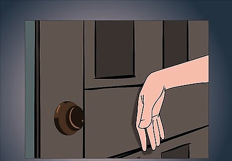Feel the door with the back of your hand. Don't open the door without first feeling it. The back of your hand is very sensitive to heat, and by using it you also won't risk burning your palm or fingertips. If the door or doorknob is hot, the fire is probably right outside. If that's the case, don't open the door. Even if the door isn't hot, get ready to slam the door quickly shut if you need to. Open the door slowly, just a crack, with a steady hand. The pressure from the fire can force the door open if proper care isn't taken.