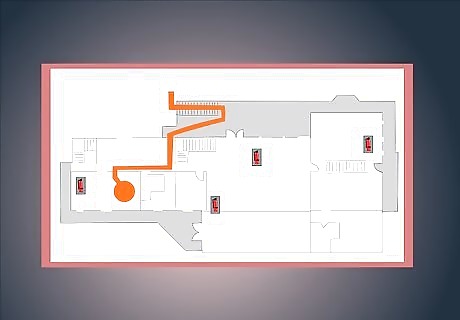 Learn your escape routes when you arrive at the hotel. If a fire started in your home, you'd probably know the best way to get out and you'd probably be able to find your way there even in complete darkness. If you can't do this in your hotel, you're risking your life. Ask for a map of the hotel at the front desk. If you can't get a map at the front desk, you may be able to find one on the inside of your room's door, depending on where you're traveling. As soon as you get to your room, study the map and find the nearest exit. Then find the alternate exits. Walk the potential escape routes from your room all the way to the outside of the building, counting the number of doors between your room and the exits and noting any unusual features that may help you find your way. Check for potential hazards or obstructions along the way and try to make sure the exit doors open. Don't plan on using the elevator.