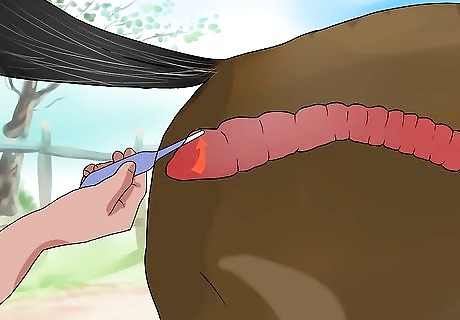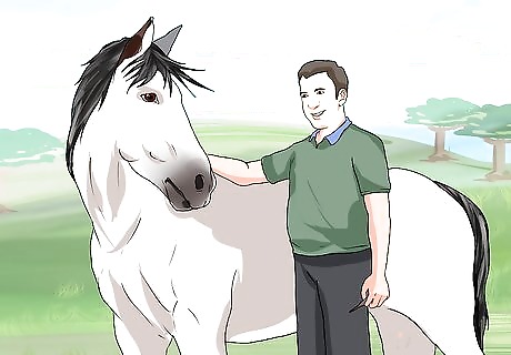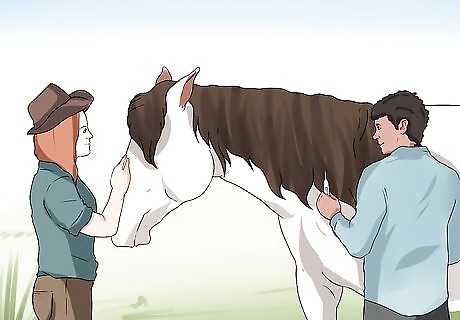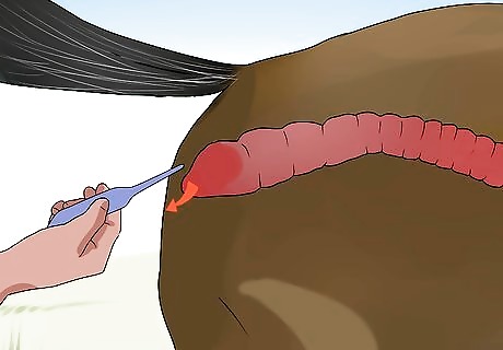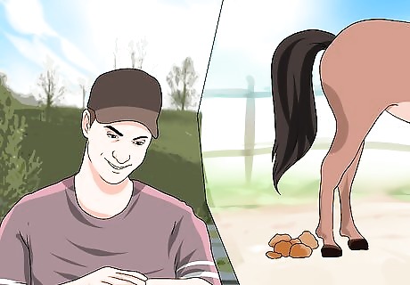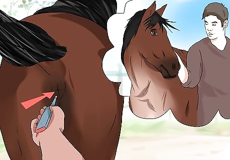 Wait until the horse has just had a bowel movement. It’s best to time taking a horse’s temperature for just after he has passed stool. This will reduce the possibility that you will insert the thermometer into dung. Dung registers a higher temperature reading and your reading will not accurately reflect the horse’s body temperature. Try feeding the horse or giving it a treat. This way, the horse will begin to trust you.