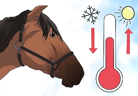 Consider the weather conditions. If the weather is extremely hot or extremely cold, your horse’s temperature may be slightly off one way or the other. In cold winter weather, a horse’s normal temperature shouldn’t be above about 100.5 degrees F. During the summer, a horse’s core temperature can raise up to 101 degrees F or more. Call your vet if the temperature is over 101.5 degrees F.