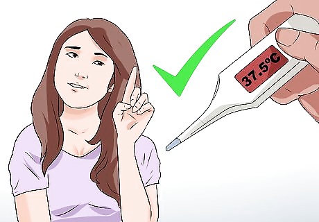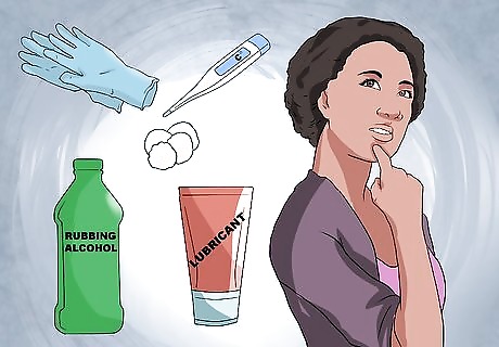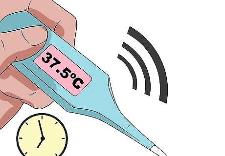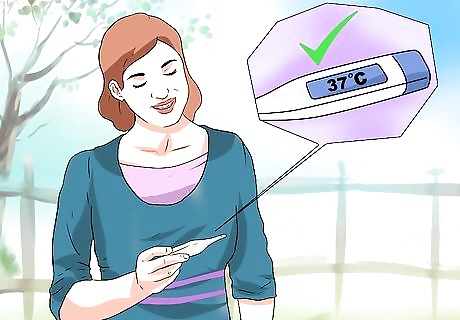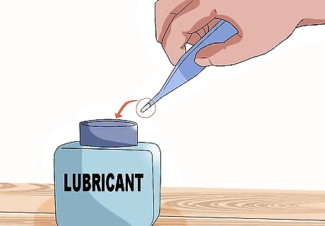 Check the digital display on the thermometer. If you are using a digital thermometer, switch it on. Make sure that the digital display appears in the display window. This will ensure that the thermometer is working correctly and that the battery is not dead. Wait until the digital display is flashing L (for low temperature reading). This will flash for approximately 10 seconds before registering a reading of a low or normal temperature. If you’re using a traditional mercury thermometer, shake it vigorously two or three times to make sure that the mercury has returned to the bulb prior to use. If you don’t take this step with a mercury thermometer, the mercury will read a previous "high" and you will get a false reading.
