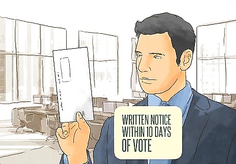 Inform the partner of their expulsion. Your partnership agreement should tell you how to give the partner notice. It probably also gives you a deadline for informing the partner. For example, you might have to provide written notice to the partner within 10 days of the vote. The partnership agreement might also require that you briefly state the grounds for the expulsion.
