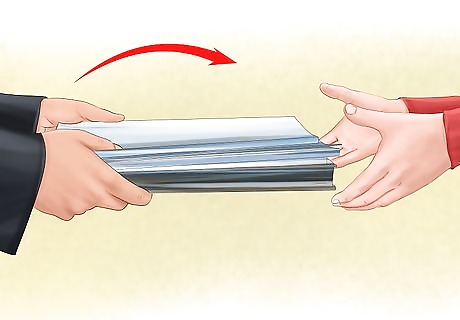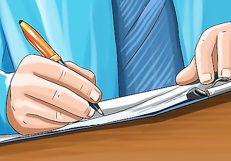 Sign your affidavit. Typically an affidavit must be signed in the presence of a notary public. The notary verifies your identity and serves as a witness to the signing of the affidavit, but they don't have to read the affidavit or know any of the details of your situation. A notary public typically is available at the courthouse for a small fee. You also may be able to find a notary public at your bank, since they often offer notary services free of charge to their customers. In some courts, you may sign your affidavit in front of the clerk rather than seeking out an independent notary public. After you've signed your affidavit and had it notarized, make at least one copy of it for your records. Depending on the court's rules, the clerk may want additional copies from you. The clerk can make copies, but typically you'll be charged a fee per page.