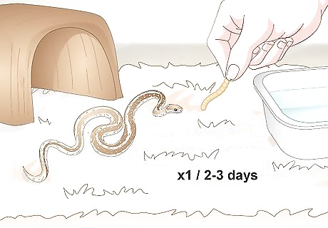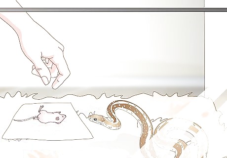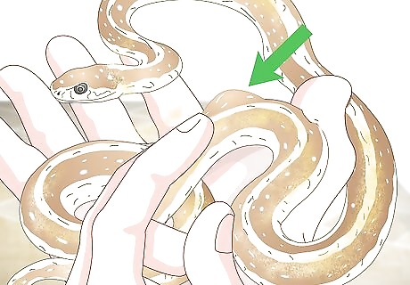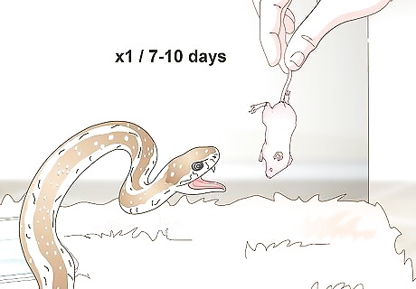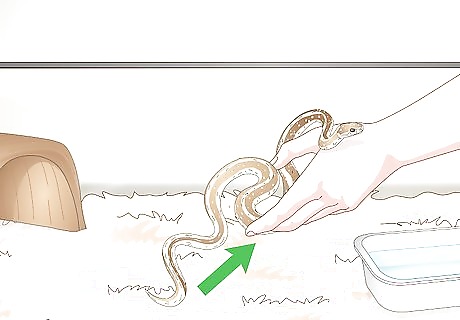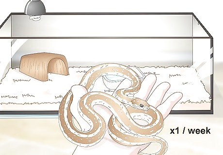 Take the snake out of the enclosure at least once per week. If your snake is new, give it a few days to settle in first and make sure that it eats its first meal. Handle the snake regularly so that it can get used to you and learn to trust you. Over time, the snake will become more comfortable with being handled. Regular handling also provides a good opportunity for checking the snake's health.