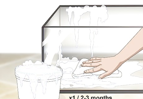 Clean the enclosure completely using soapy water every 2-3 months. Mix a few drops of dishwashing detergent into a bucket of warm water. Remove everything from the enclosure and use a cleaning rag to wipe down the enclosure walls and floor, the hides, the cage furniture, and the water bowl with the soapy water. Dry the enclosure fully using a clean rag before setting up the enclosure again and returning the snake. If you are using a paper towel substrate, in addition to cleaning the whole enclosure every few months, simply wipe down the glass where the paper towels are soiled when you change them. If the cage furniture cannot be cleaned, such as objects made from cardboard, replace it when you clean the enclosure. Cage furniture that is made from plastic or wood can be wiped down and dried.