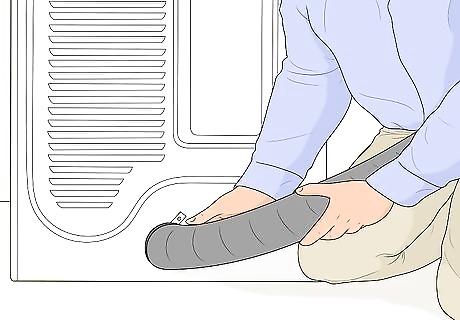 Vacuum the dryer duct once per year. Disconnect your dryer from the power source and carefully pull it away from the wall. Unhook the duct from the back of the dryer and use a vacuum to clear out the inside. Then, reconnect the duct and plug your dryer back in. While you’re back there, you can also vacuum behind and underneath your dryer to get rid of any lint trapped in the area.