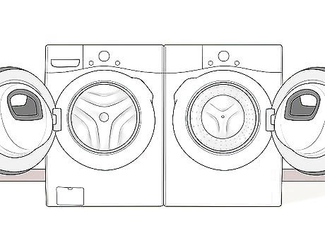 Leave the door open when you aren’t using your washer. If you have a top-loading washer, leave the door up so the drum can dry out. If your washer is front-loading, prop the door open with a sponge or a small towel to let it air out. Shutting the door of your washer can trap in moisture, leading to mold and mildew.