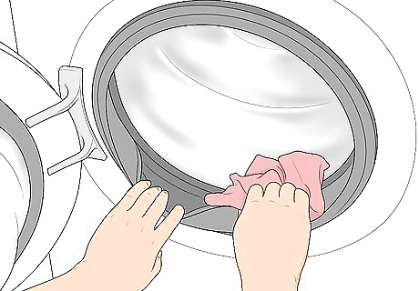 Wipe down the washer’s door and gasket after every use. The gasket is the seal on your washer that holds the door tightly closed. After every load of laundry, grab a clean, dry towel and run it over the door and the gasket to get rid of most of the moisture. If mold and mildew builds up around the door or the gasket, it can prevent the washer from closing or sealing properly. Try keeping a few clean towels next to your washer for convenience.