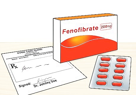 Fill your prescription. Fenofibrate medications are available with a prescription and can come in both generic, called simply fenofibrate, or brand name forms. Some common brand names for this medication include Antara, Fenoglide, Lipofen, TriCor, Triglide, and Trilipix. If your doctor has prescribed a brand name, ask them if the generic can be prescribed instead, as that will probably cost you less and will work just as well in the same dosage. Before taking fenofibrate, you will have had your cholesterol tested by a doctor. If they determine that your triglycerides are too high, they may prescribe fenofibrate to lower your levels quickly.