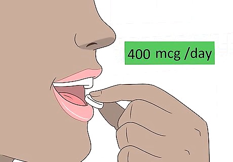 Consume at least 400 mcg of folic acid a day. This is the recommended daily dosage for pregnant women. Some organizations, such as the U.S. National Institutes of Health, suggest that pregnant women take 600 mcg of folic acid each day. Although pregnant women can safely take up to 1,000 mcg of folic acid daily, it’s best to work with your doctor to decide on a specific dosage. If you take a prenatal vitamin supplement, it likely contains all the folic acid you’ll need. Many prenatal vitamins contain 800–1,000 mcg of folic acid.