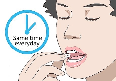 Take folic acid at a consistent time each day. In order to maximize the usefulness of the folic acid for your body (and, if pregnant, the growing embryo), pick a certain time and consistently take your folic acid then. This could be when you first get up in the morning, while you’re eating breakfast, or during an afternoon break. That said, do not take two doses if you skip a day. For example, if you realize on Friday that you never took folic acid on Thursday, do not take two doses on Friday. This has the potential to harm your body.