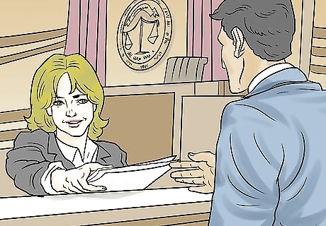 File your complaint. To initiate your lawsuit, you must take your complaint along with two copies to the clerk of the court that you want to hear your case. The clerk will stamp your documents and give the copies back to you. If you've hired an attorney, they'll take care of filing the complaint for you. It's not necessary for you to go along unless you want to observe the process. Your documents must be accompanied by a filing fee, typically several hundred dollars. Your attorney will add this to the costs of your case, which will be taken out of any settlement or award you receive. If you're representing yourself and can't afford the filing fees, ask the clerk for a fee waiver application. You'll provide the court with information about your income and assets. If these fall below a threshold amount set by your state, you won't have to pay court costs for your lawsuit. The clerk will stamp your documents "filed" with the date and assign your case a unique case number. The copies will then be returned: one for your own records and one for the bar owners.