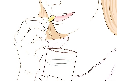 Swallow the pills with water. If you are taking pills or capsules, they'll go down easier if you follow them with a glass of water. You could also take them with another beverage, such as tea or juice. Purchase the liquid form if you don't like pills. You can also wash the liquid down with water. You can take omega-3s either with food or on an empty stomach. If you get “fish oil burps” or burps that have a fishy flavor, try storing the capsules in your fridge or freezer.