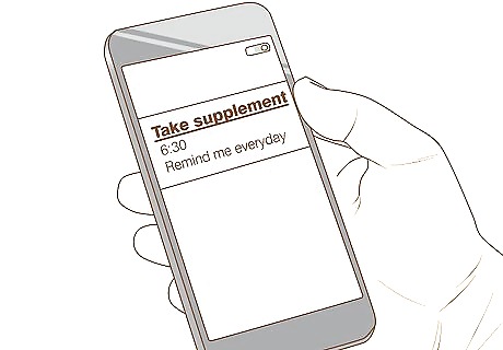 Take the recommended dosage at a convenient time of day. You'll get the same benefits from omega-3 supplements no matter whether you take them in the morning or evening. Just pick a time of day that you are likely to remember to take them. For example, you could take them each morning with your breakfast. Try setting a reminder on your phone if you're worried you will forget to take your supplements.