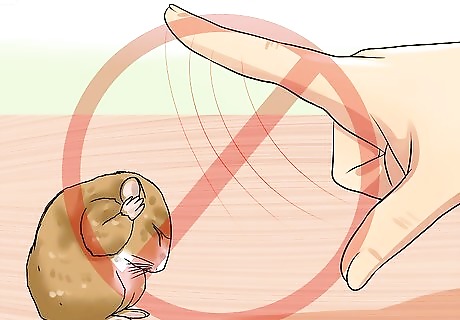 Do not discipline your hamster. You should never physically punish your hamster. Do not flick him or tap his nose. If he bites or nibbles, lightly blow in his face. You can also tell him “No!” using a serious tone . Physical punishment only creates fear. If your hamster is afraid of you, you may never be able to tame him.