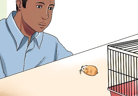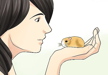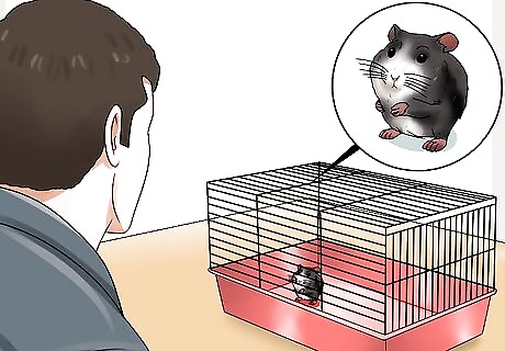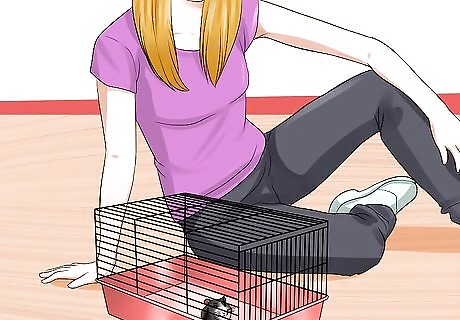Sit next to the cage. When your hamster is awake, sit next to the cage and talk to him. If your hamster eats, drinks, and plays in front of you, he is comfortable with you. You can read a book or sing softly to your hamster during this time.