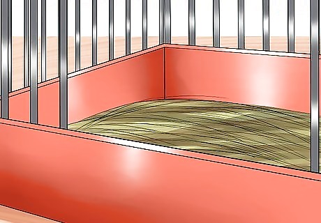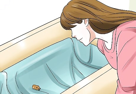 House in a solid-bottom cage. Your hamster can live in a wire cage or an aquarium (10 gallon minimum) with a mesh top. Line the cage with at least 2 inches of Timothy hay, aspen shavings, or processed corn cob. The cage should also have an exercise wheel, cardboard tubes, and a piece of natural wood. Clean the cage with warm soapy water once a week and add new bedding. Remove any soiled bedding and droppings every day.