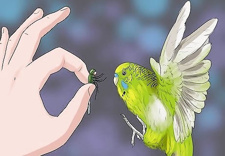 Introduce the fly. When your budgie starts getting good, get a dead fly. Don't give them a big one, give them one they can eat. A house fly would be ideal. .