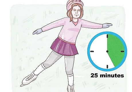 Keep encouraging them and keep lessons short. Remind your child that ice skating is hard, that it takes a lot of practice to get better, and that they’re doing great. Try to keep lessons to around 25 minutes in the beginning to avoid having them get too tired. They are more likely to get hurt if they push themselves too hard when they’re tired. Encourage them to try new things each lesson, such as staying away from the edge. When they can easily do 25-minute lessons without getting tired, they may be ready for longer lessons.