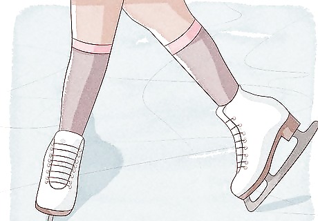 Fit them in the right skates. Whether you’re renting skates at the rink or looking to buy a pair, you’ll want to make sure they’re the right size. Start by having your child try on skates that are in their shoe size, then move up or down a size if needed. The skates should be tight on their feet and their feet should not be able to slide around inside the skate at all. When your child’s skates are laced up, they should be standing straight up, their heels should be up against the back of the skate, and they should be able to wiggle their toes. If their ankles are curving in or out, the skates may not be laced tight enough or the skates may be too big. Choose lace-up skates or hook-and-loop fastener over the rigid boot style skates with buckles. These buckles can become undone if your child falls.