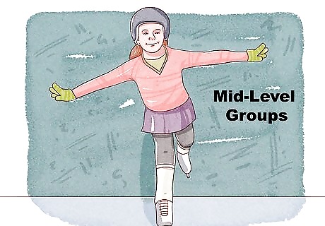Organize coordination activities for mid-level groups. Activities like obstacle courses and baseball on ice are great games for improving coordination with mid-level groups. You can also build upon fetch games used in beginner classes; just have them bring the objects back faster. Have mid-level students pair off and toss a squishy ball back and forth between each other while gliding. Mid-level students are students who can walk and move around on the ice, get up on their own, play basic movement games, and can stand or skate on 1 foot for a short period of time. Other game ideas for this group include fill-the-bucket relay and follow the leader incorporating skating on 1 foot.
