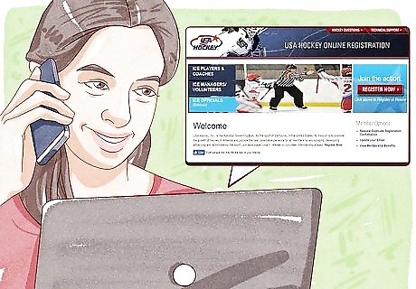 Call your local rink or school district about coaching hockey. For coaching recreational or high school hockey teams, find out the requirements at your local rink, rec center, or school district. Your requirements may include experience playing on a team and assistant coaching, registering through USA Hockey, and taking other safety training courses such as equipment safety and concussion safety. The USA Hockey website is at https://www.usahockey.com/usahockeyregistration.