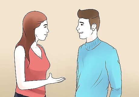 Become friends with the boy. If you are too Shy to [[Talk to a Boy You Like|talk] to him at first, make or develop a friendship with someone close to him, and hang around with them (this is also a great opportunity to make new friends). You can start by laughing at his jokes, then answering questions he asked to the group, and so on and so forth, until you are ready to speak to him.When you are feeling that you two are getting close tell him that you like a boy but you don't know how to tell him and when he asks who is it don't tell him and see what he does or says after that.