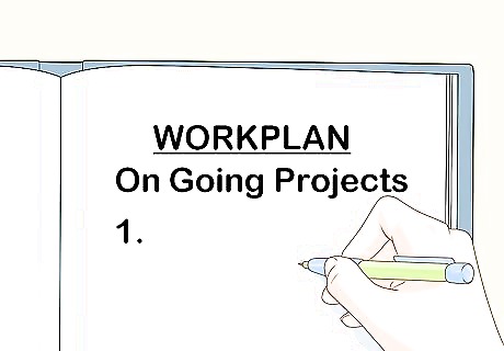 Give your boss a plan for how you'll get your work done. Make a list of your ongoing projects, clients, and/or work goals. Outline a plan for how to get your work done while you're pregnant, as well as how your work will get done while you're out on maternity leave. Consider who could take over for you, as well as which tasks can wait until your return. Provide your contact information, client contact information, and necessary passwords to your work accounts. If you'll need help completing certain tasks while you're pregnant, offer your boss a plan for accomplishing your workload. Be prepared to discuss the possibility of flexible work assignments, such as working from home near the end of your pregnancy or working part-time during part of your pregnancy or maternity leave. Don't try to plan every detail, however. It's normal and acceptable to maintain some flexibility.