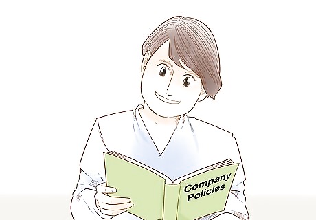 Review your company's policies on maternity leave. Your company likely has comprehensive policies regarding maternity leave. Knowing them will empower you as you talk to your boss. This information should be in your employee handbook. If you can't find it, your human resources (HR) department can provide it. If you have questions about the policies, you can talk to the HR manager or the person who handles employee insurance and benefits information. However, keep in mind that they may start to suspect that you are pregnant before you're ready to make your announcement. If you live in the United States, the Family and Medical Leave Act (FMLA) guarantees 12 weeks of unpaid time off, which you can use for maternity leave.