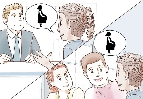 Tell your boss before you tell your coworkers. Ideally, your boss should be the first person at work who knows you're pregnant. Not only is this respectful to your boss, it also protects you. Your boss can't legally fire or demote you for being pregnant. However, if they hear rumors about your pregnancy and fire you before you tell them, you won't be able to show they acted out of discrimination. If you're afraid your boss will negatively react, it's okay to first talk to human resources. However, try to tell your boss soon after you speak with HR.