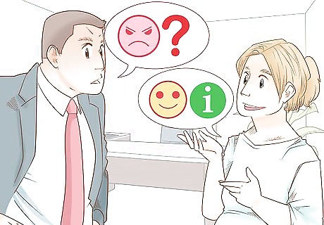 Use a positive, upbeat tone to convey this is good news. It's normal for your boss to worry about business concerns that may arise due to your pregnancy. However, you can ease some of that worry by showing them that you are optimistic about the future. This is a great change for your life, so don't let work worries put a damper on that! Present the news as a positive announcement and speak affirmatively as you reveal your plans for your job tasks. Even if you aren't feeling certain about the future, an optimistic attitude can help you get better results.