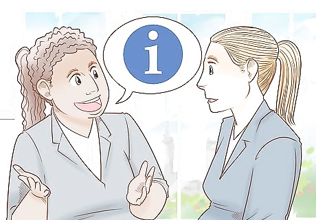 Know your rights as a pregnant worker. In most cases, there are laws regarding how a business can treat pregnant women. This ensures that you and your baby are able to enjoy a healthy, low-stress pregnancy and birth. It's important to know these rights so that you can be your best advocate in the event that your boss tries to do the wrong thing. For example, your employer most likely can't fire, demote, or re-assign you simply because you're pregnant. It's also a good idea to know the agencies that can help you assert your rights, such as the Equal Employment Opportunity Commission in the United States.